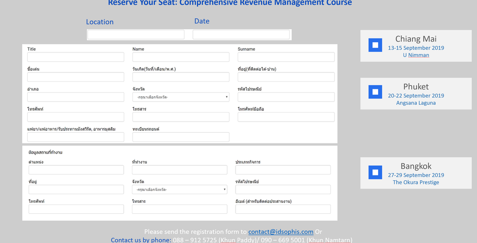 คอร์ส Comprehensive Revenue Management for Hotels ในวันที่ 27-29 กันยายน เหลือไม่กี่ที่แล้วนะคะ อยากให้มาเจอกัน สนใจข้อมูลเพิ่มเติม ติดต่อ คุณแพดดี้ 088 – 912 5725 หรือ คุณน้ำตาล 090 – 669 5001 add Line มาคุยกันได้เลยค่ะ